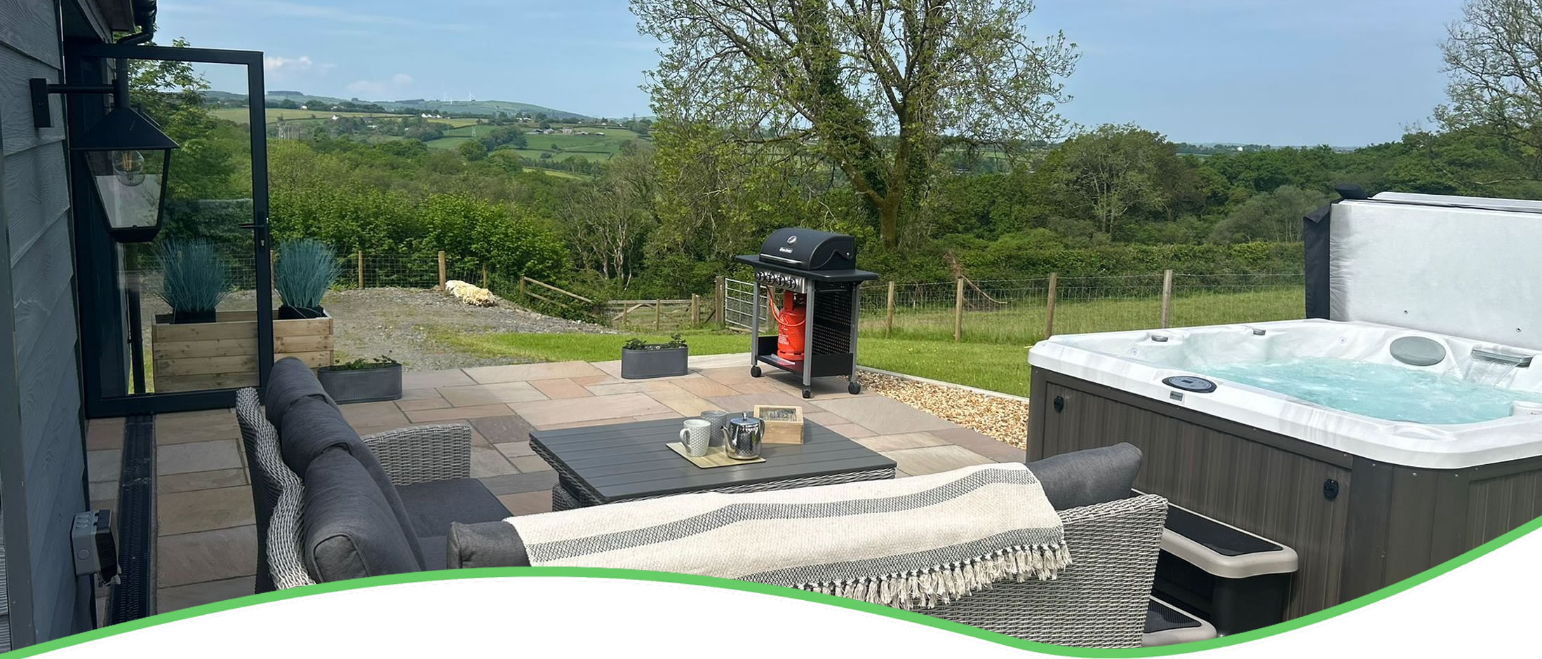 • Private hot tub overlooking the beautiful Carmarthenshire countryside